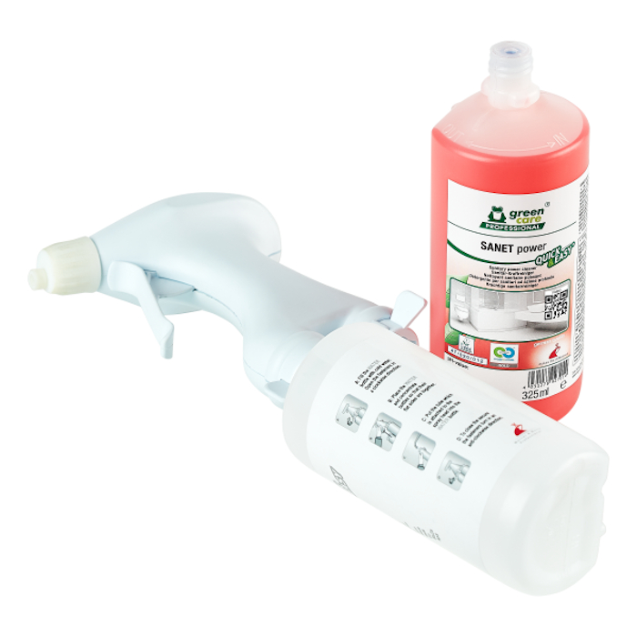Adecuado para todas las superficies resistentes al ácido de todas las áreas de baño y de sanitarios como azulejos, accesorios cromados, porcelana, piedra, etc. No es adecuado para piedra natural (p. ej. mármol) ni esmalte sensible al ácido. Para nuestro Sistema Quick & Easy recomendamos cambiar el agua cada 24 horas.