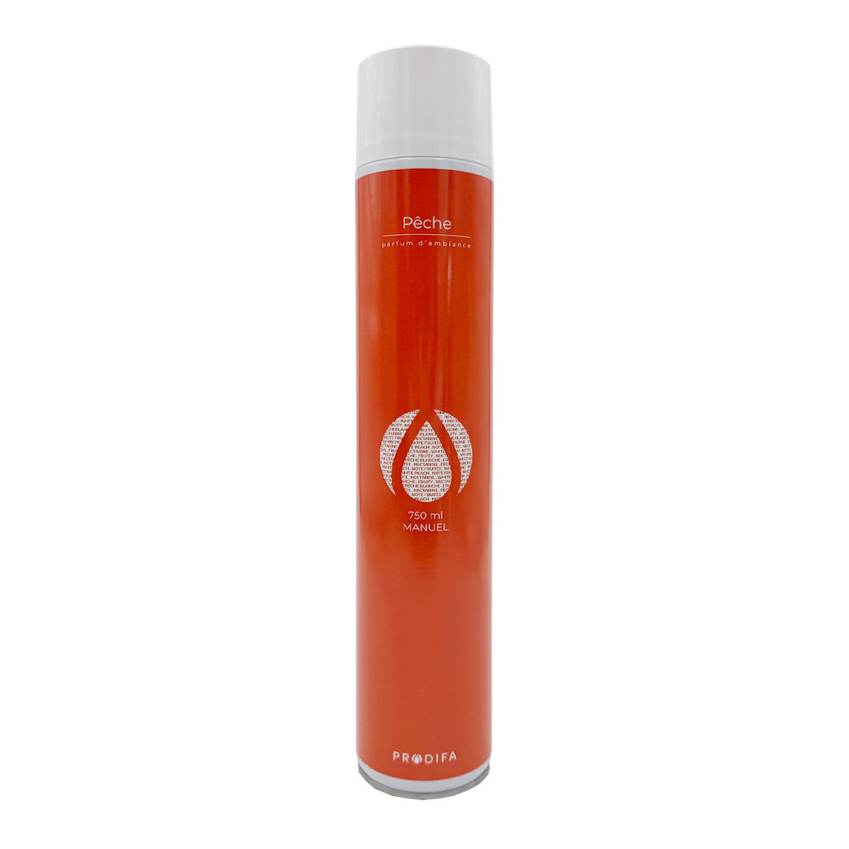 Densidad: < 1.000 kg/l. Líquido fluido en aerosol. Ambientador spray olor melocotón. Aerosol con gas propulsor butano 2,5 bares.