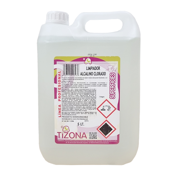 Densidad: 1.046 kg/l. Aspecto: Líquido viscoso. Color: Amarillo. pH: 11 - 13. Desengrasante alcalino clorado. Producto que une la fuerza del poder del cloro con el poder detersivo de los tensioactivos. Limpia sin esfuerzo la suciedad incrustada en planchas. Biodegradable. Formulación especialmente diseñada para la eliminación de residuos proteicos alimentarios. Penetra en la suciedad y la grasa ablandándola y facilitando su eliminación. Provoca quemaduras.