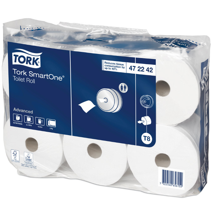 Higíenico industrial 2 capas dispensador central SMARTONE. 1150 servicios. 207 m por rollo. Dispensadores 0805220 y 0805432.
