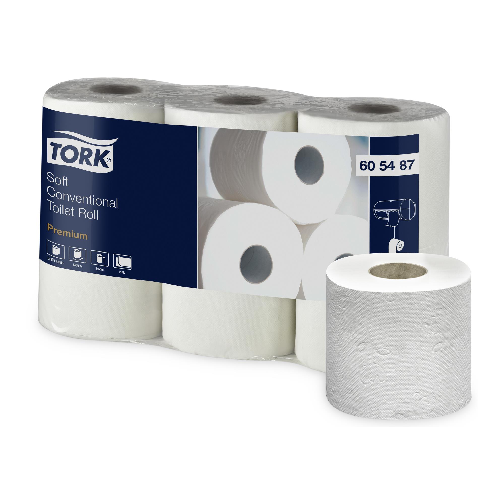 Celulosa blanca. Rollo de higiénico pequeño de 2 capas. 405 servicios. Paquetes de 6 rollos. 49,8 m por rollo.