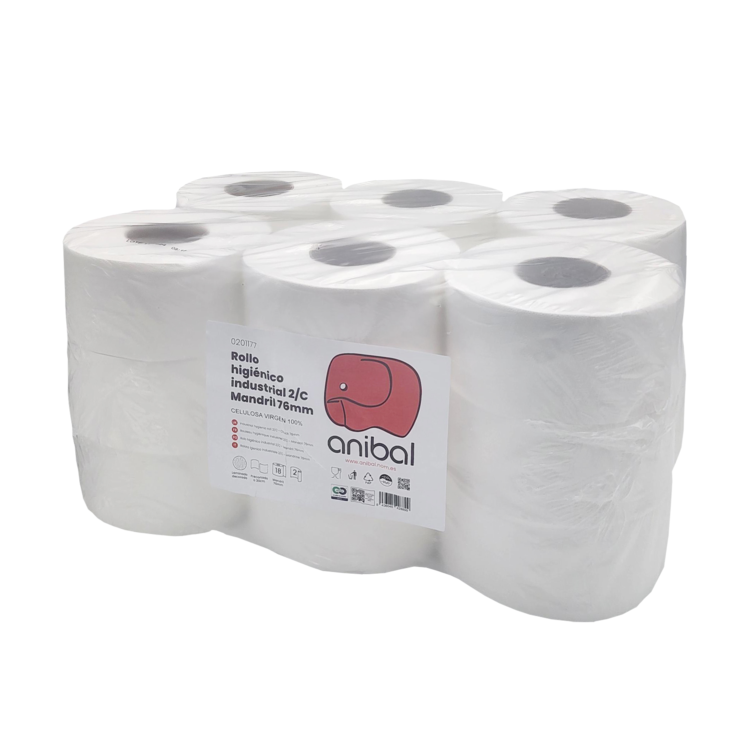 ROLLO HIGIENICO INDUSTRIAL 2/C MANDRIL 76 MM ANIBAL