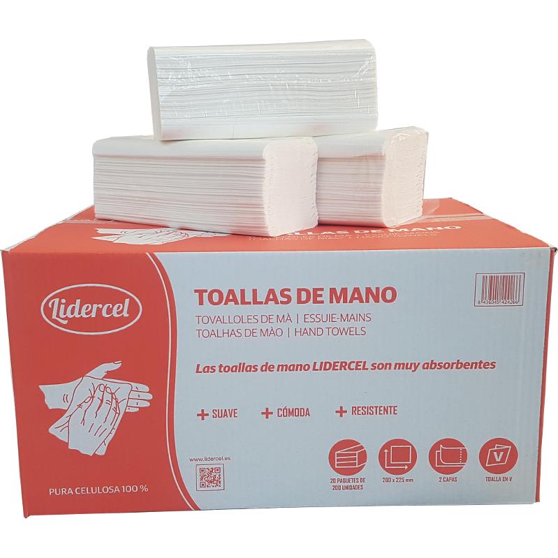 PAQ. 200 TOALLETA V GOFRADA 20X22,5 CM LIDERCEL
