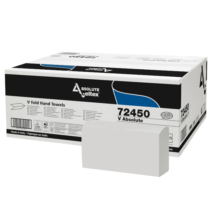 Toalleta blanca entrelazada 2 capas. Medidas desplegada: 21,5 x 21 cm. Tipo plegado: V - 2 paneles.
