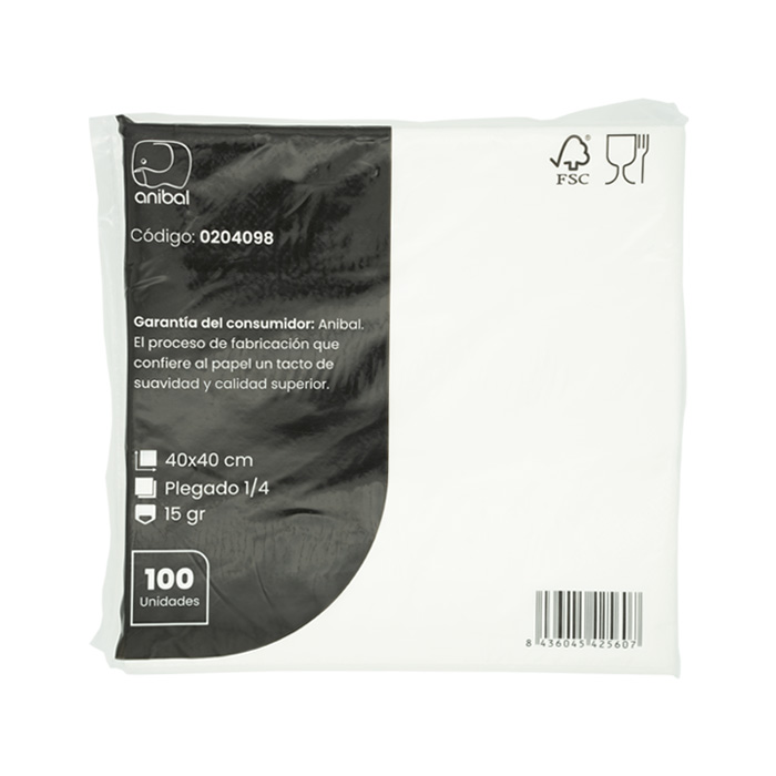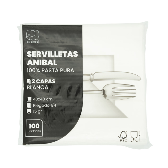 PAQ. 100 SERVILLETA PASTA PURA 40X40 2C ANIBAL