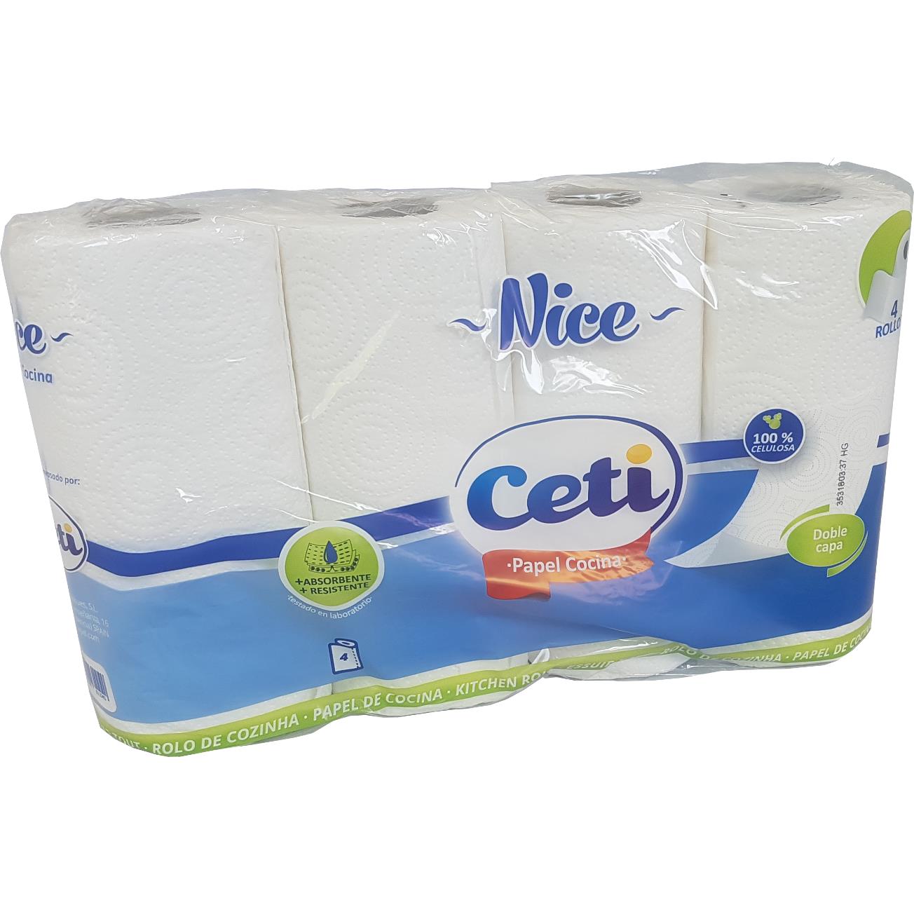 Rollo papel cocina blanco gofrado de 2 capas. Paquete de 4 unidades. 39 servicios. 9,4 m por rollo.
