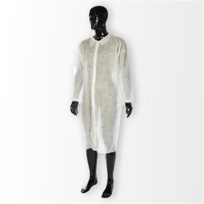 Bata blanca de visita de polipropileno con velcro. Un solo uso.