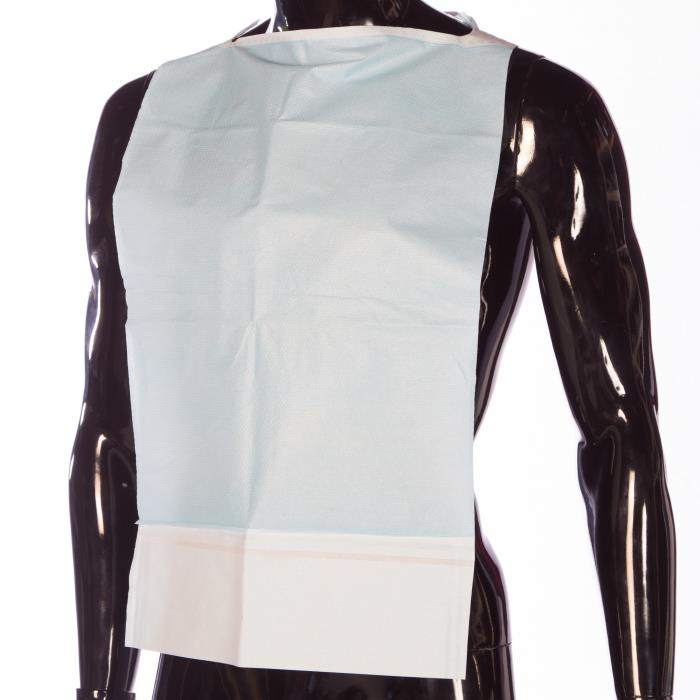 Babero Soft desechable de papel y polietileno con bolsillo de papel.