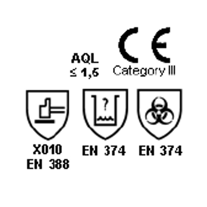 Antialérgico e higiénico: gracias al proceso interno de clorinación (inmersión en cloro para sellar los poros), que reduce la presencia en el guante de proteínas de látex a casi cero. Tratado con un proceso antibacterias que reduce el riesgo de infecciones. Espesor: 0,4 mm.