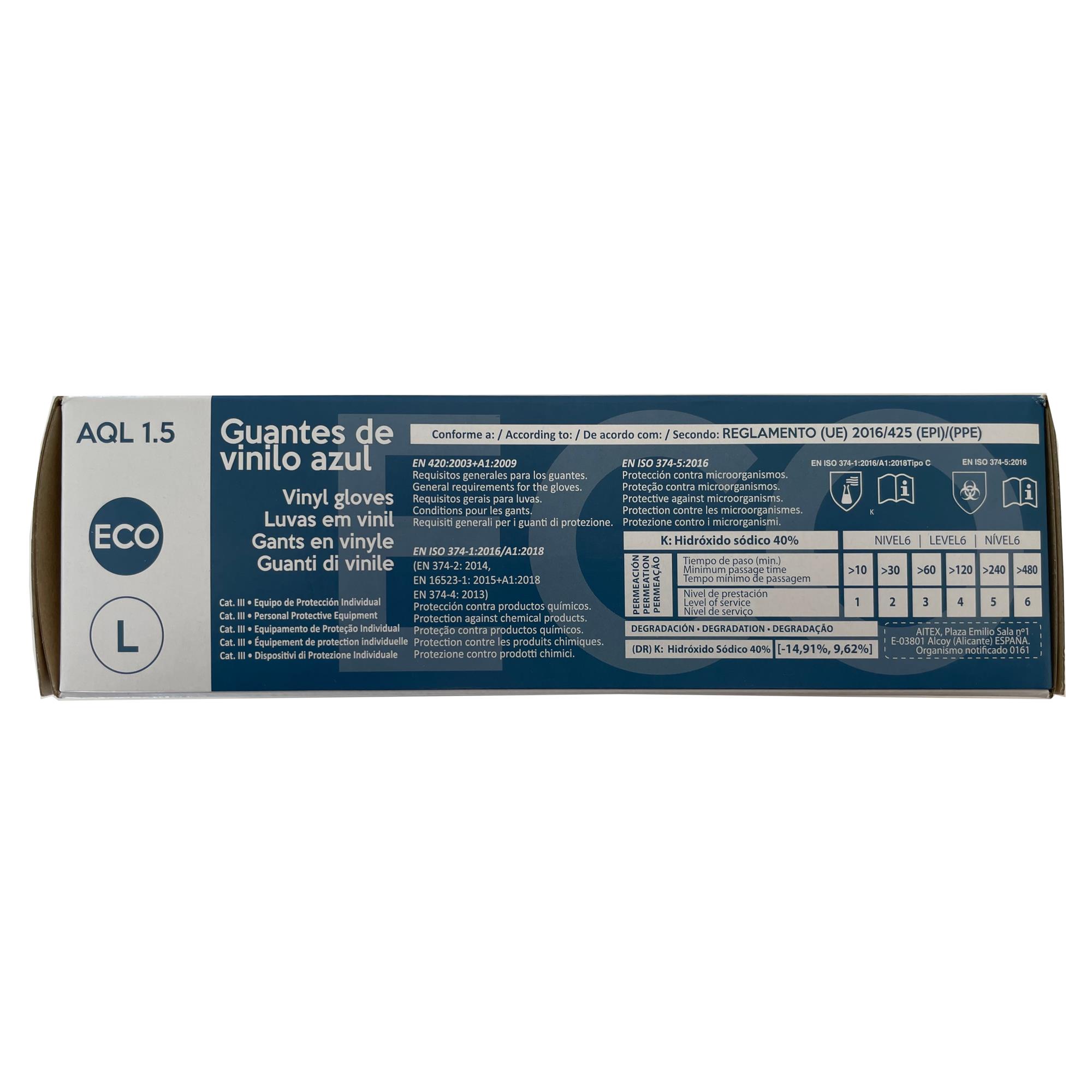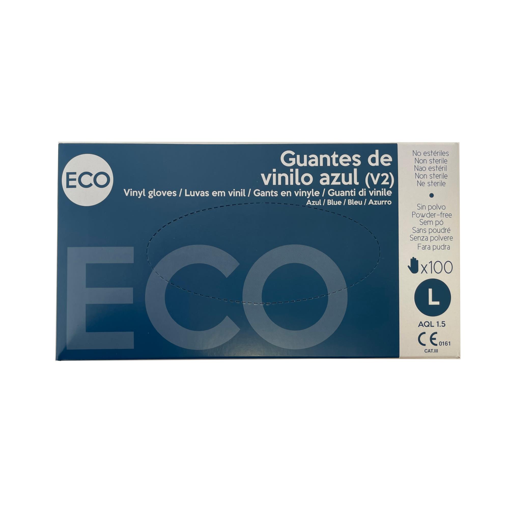 Guante de polivinilo 100%. Guante vinilo azul sin polvo. Ambidiestro.
