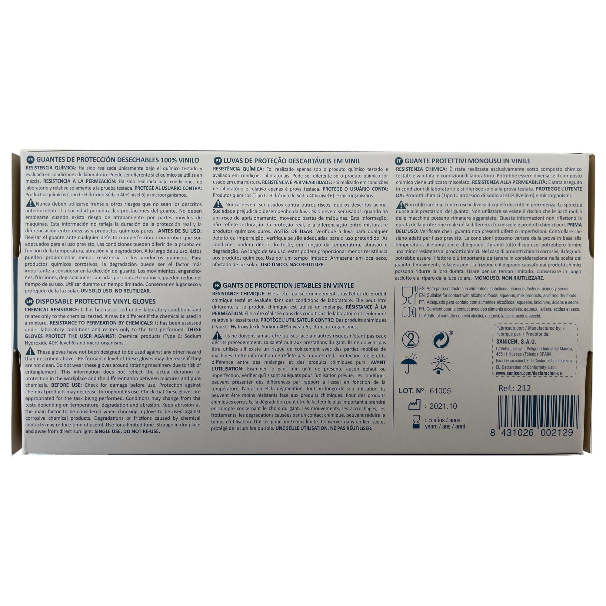 Utilización para aislar y reducir el riesgo de contaminación, manipulación de alimentos, limpieza y desinfección de material y locales. Apto para contacto con alimentos secos, ácidos, acuosos, alcohólicos y productos lácteos en base al Reglamento (UE) nº. 10/2011 del 14 de Enero de 2011.