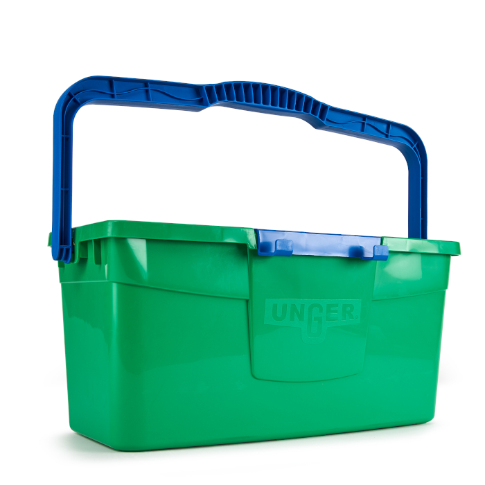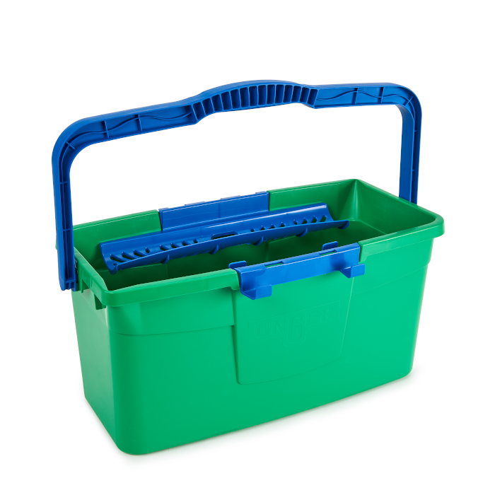 Cubo 12 L Green Label. 2 bandejas para el limpiacristales y 1 para el mojador. Mango robusto y ergonómico. Escala de medición interior.