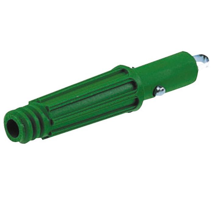 El cono se aplica al palo y queda retenido mediante el resorte. Para aplicar o enroscar útiles.