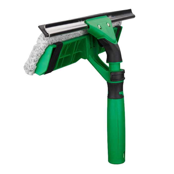 Limpiacristales y mojador en uno. Completo con guía S, almohadilla microfibra y goma.