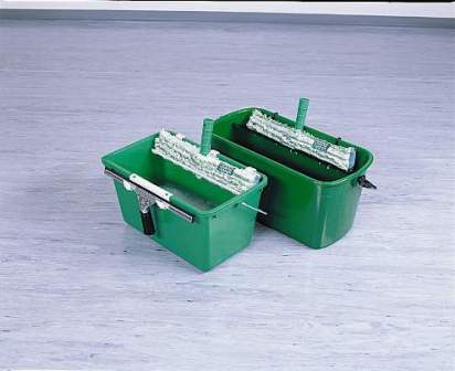Cubo grande para la limpieza de ventanas. El mojador de 45 cms entra por completo. Sistema de medida, 2 desaguaderos.