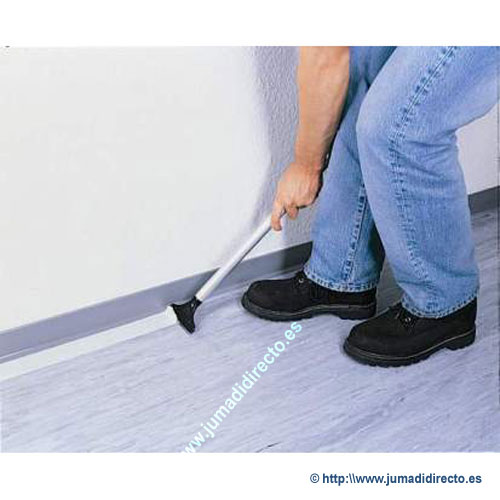El lado con el filo sirve para eliminar restos de pintura, etiquetas adhesivas, etc. El lado obtuso es lo ideal para cemento, mortero, etc. Ergonomía: Empuñadura agradable de plástico. Seguridad: Con protector.