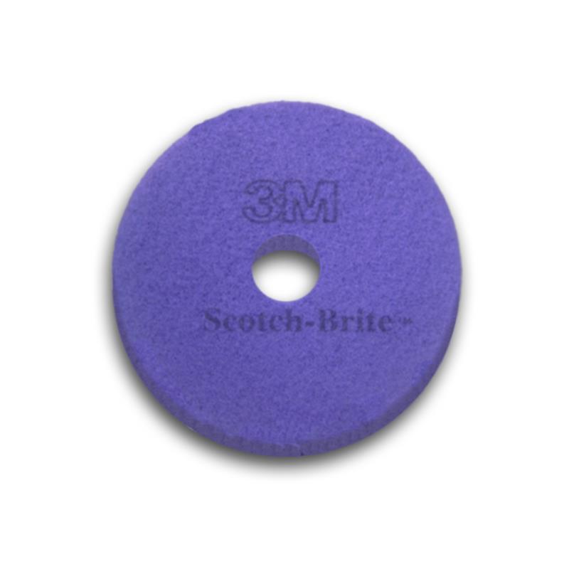 Durabilidad típica: 10.000 m2 con Auto-Fregadora, si se mantiene adecuadamente. Incrementa el nivel de brillo del suelo mientras se limpia con detergente neutro común, brillo de nivel 40-50 (ángulo de 60°) en mármol (valor típico). Realza el brillo de Medio a Alto utilizado en seco. Consiste en Fibra de poliéster y adhesivo sintético. No quedan deteriorados por el agua, detergentes y limpiadores normalmente usados para mantenimiento de suelos. La cara activa es el lado oscuro púrpura que contiene diamantes sintéticos.