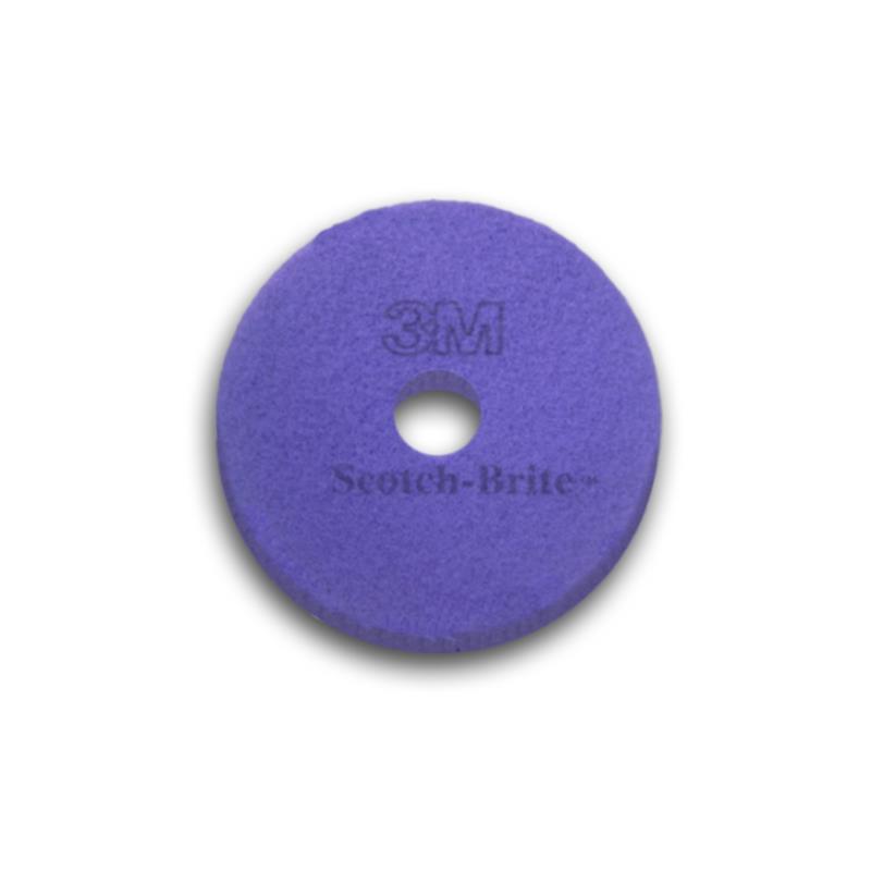 Durabilidad típica: 10.000 m2 con Auto-Fregadora, si se mantiene adecuadamente. Incrementa el nivel de brillo del suelo mientras se limpia con detergente neutro común, brillo de nivel 40-50 (ángulo de 60°) en mármol (valor típico). Realza el brillo de Medio a Alto utilizado en seco. Consiste en Fibra de poliéster y adhesivo sintético. No quedan deteriorados por el agua, detergentes y limpiadores normalmente usados para mantenimiento de suelos. La cara activa es el lado oscuro púrpura que contiene diamantes sintéticos.
