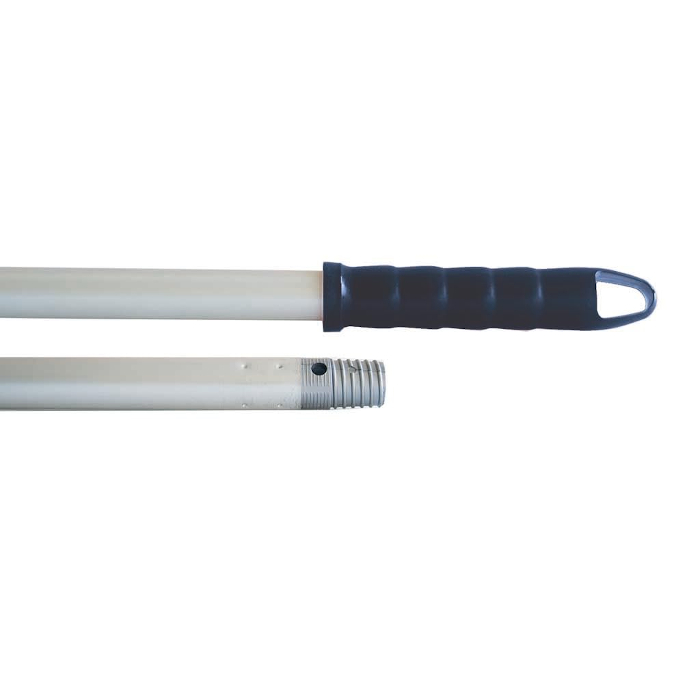Palo aluminio anodizado. Espesor tubo: 0,9 mm. Puño de polipropileno en color negro.
