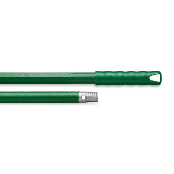 Mango verde de acero pinatdo con pintura epoxypoliester atóxica. Material rosca y maneta: polipropileno. Ø 22 mm. Espesor: 0,32 mm.