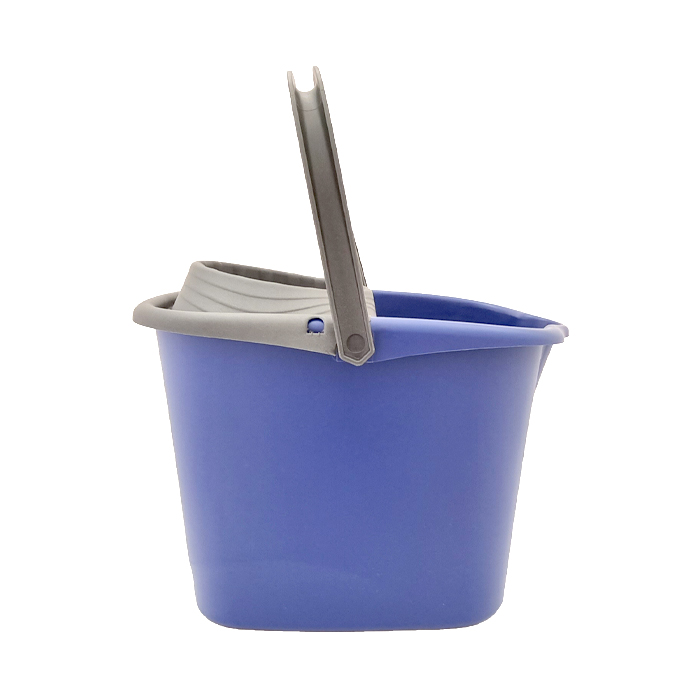 Cubo azul rectangular con escurridor gris. Capacidad 14 L.