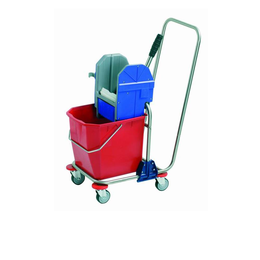 Carro fregado fácil de acero inox. 18/8. 1 cubo rojo de 25 L con prensa.