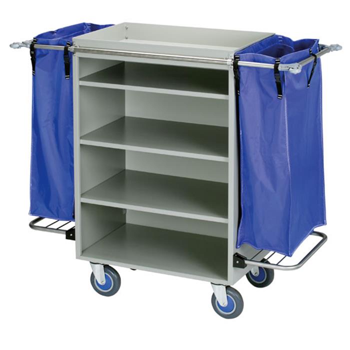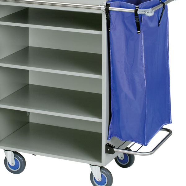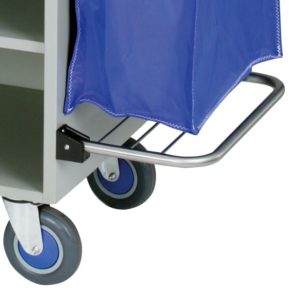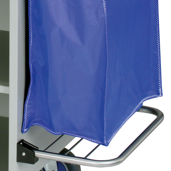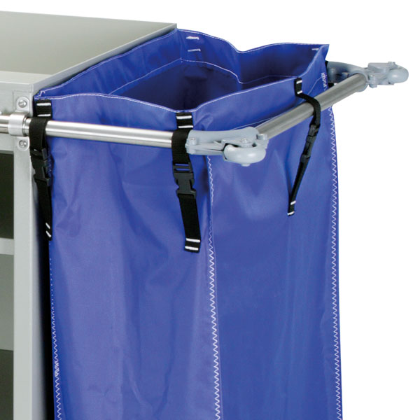 Medidas carro cerrado: 105 x 64 x 128 cm. Capacidad bolsas: 114 l/ud. Dimensiones bolsa: 50 x 27 x 92 cm. Bolsa lona plastificada azul, con 5 broches.