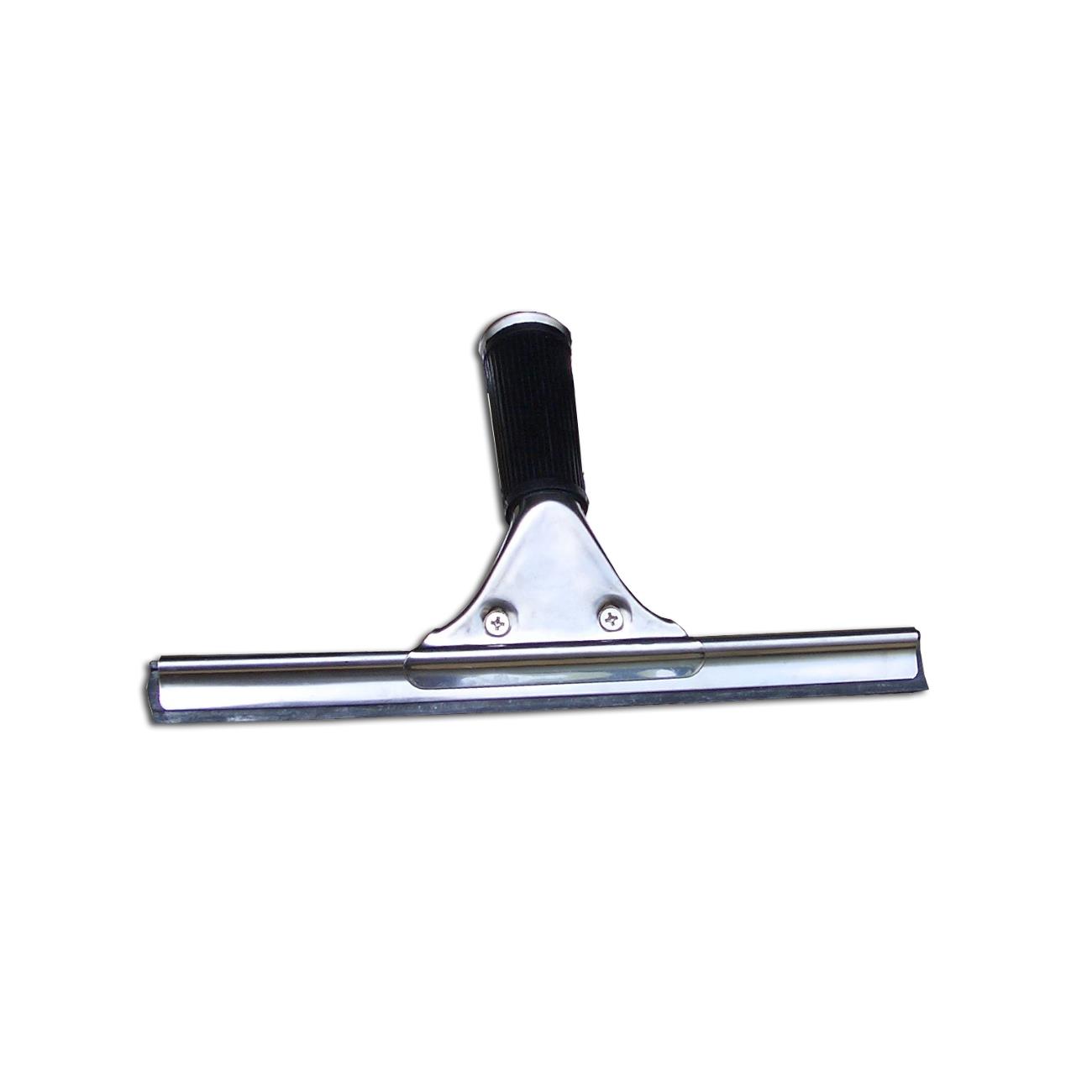 Limpiacristales de acero inox de 35 cm. Mango de forma cónica, con posibilidad de ser insertado en mango telescópico con punta cónica.
