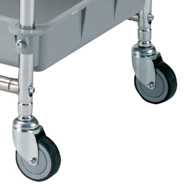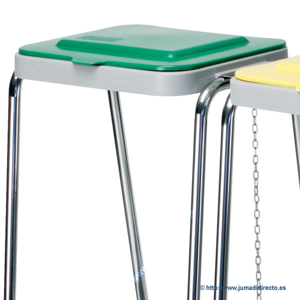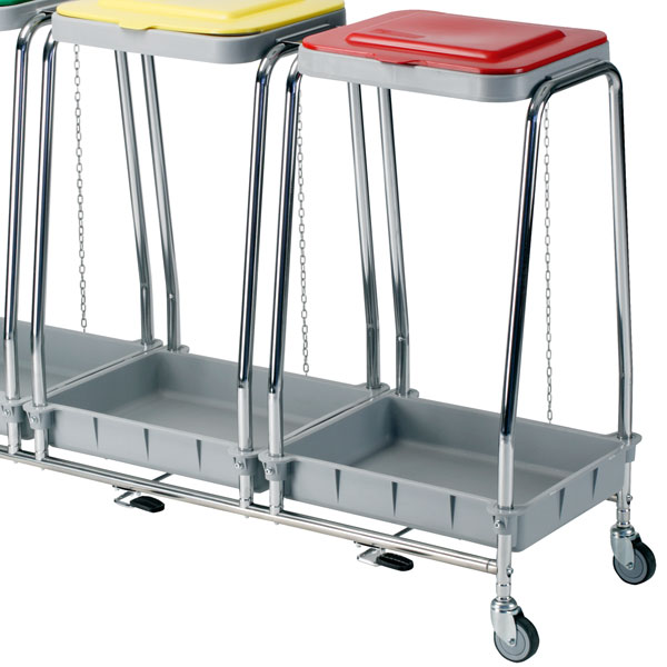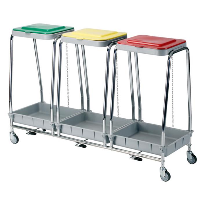 Carro soporte bolsa triple con tapas de pp con pedal, chasis cromado, 3 bandejas de pp actuan como base, 4 ruedas de 80 mm Ø (1 con freno).