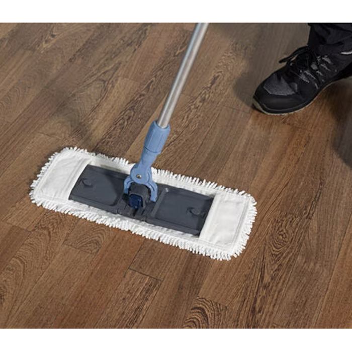 El soporte en forma de V se desliza suavemente en los bolsillos de la mopa. Mayor contacto con el suelo para una limpieza impecable. Fácil de maniobrar y de funcionamiento suave.