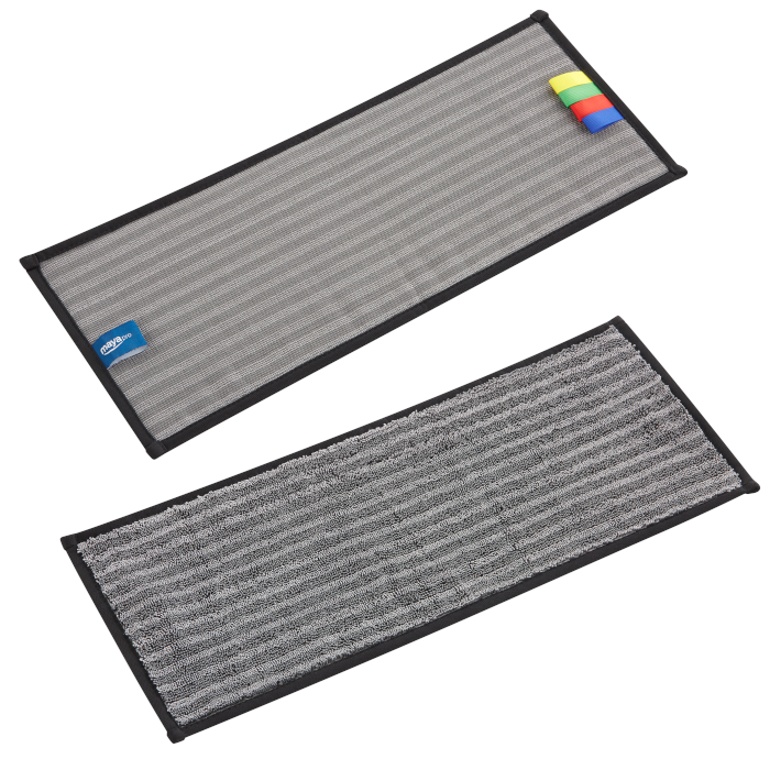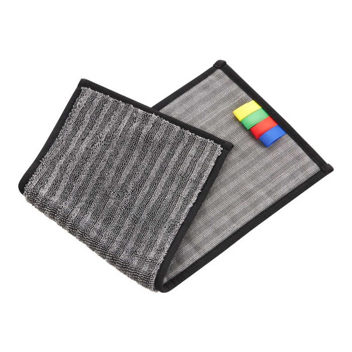 Peso: 70 gr. Presenta un atractivo diseño en gris con bordes negros, lo que le confiere una apariencia profesional y moderna. Cada recambio cuenta con una etiqueta de codificación de colores, ayudando a prevenir la contaminación cruzada al utilizar diferentes recambios en diversas áreas y entornos de limpieza. Gracias a su tejido de alta capacidad de limpieza, este recambio permite eliminar eficazmente la suciedad adherida en diferentes tipos de superficies, garantizando una limpieza a fondo. Su capacidad para recoger y eliminar la suciedad de manera eficiente asegura resultados impecables sin rayas. Hasta 500 ciclos de lavado.