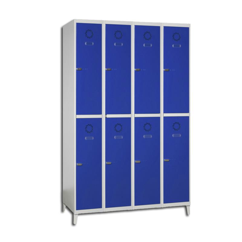 Taquilla soldada 300 mm. 4 cuerpos de 2 puertas. Puerta con etiquetero y rosetas de ventilación.