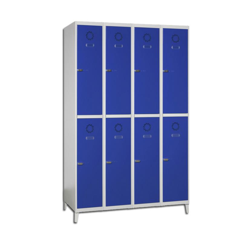 Taquilla soldada 250 mm. 4 cuerpos de 2 puertas. Puerta con etiquetero y rosetas de ventilación.