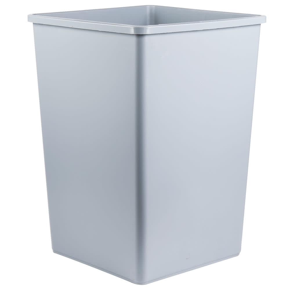 Contenedor cuadrado gris de polipropileno, con capacidad para 132,5 L. Diseño resistente.