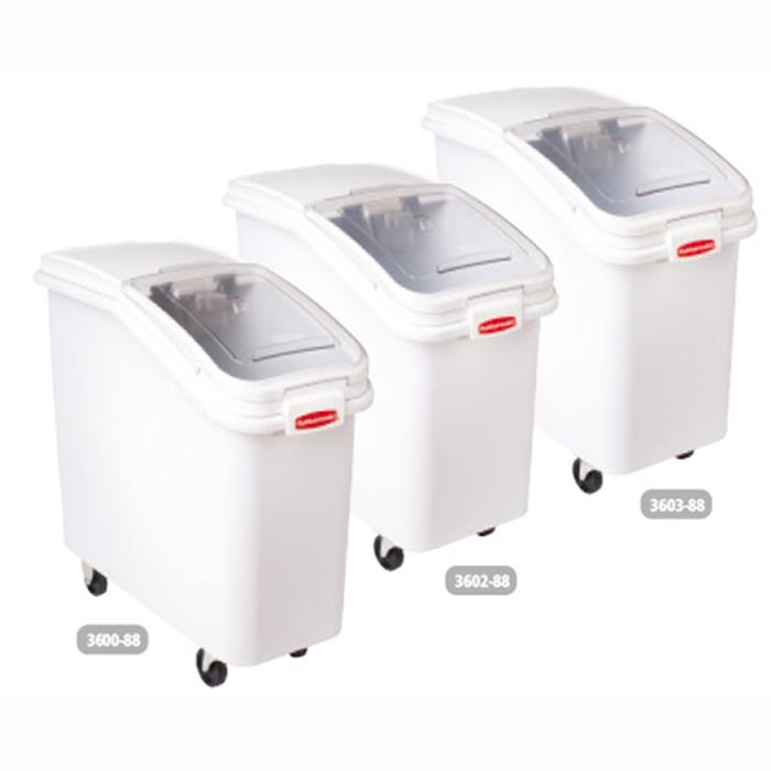 Contenedor de ingrecientes con pala con capacidad para 79 L. Con ruedas para un fácil transporte entre diferentes estancias de preparación.