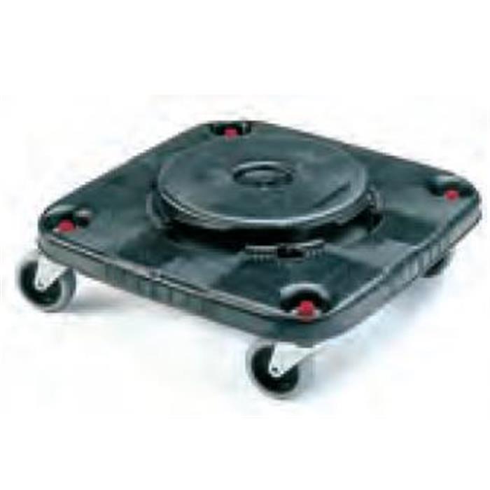Plataforma móvil cuadrada BRUTE con ruedas para facilitar el transporte de los contenedores. Material: Polietileno. Capacidad 113,4 Kg.