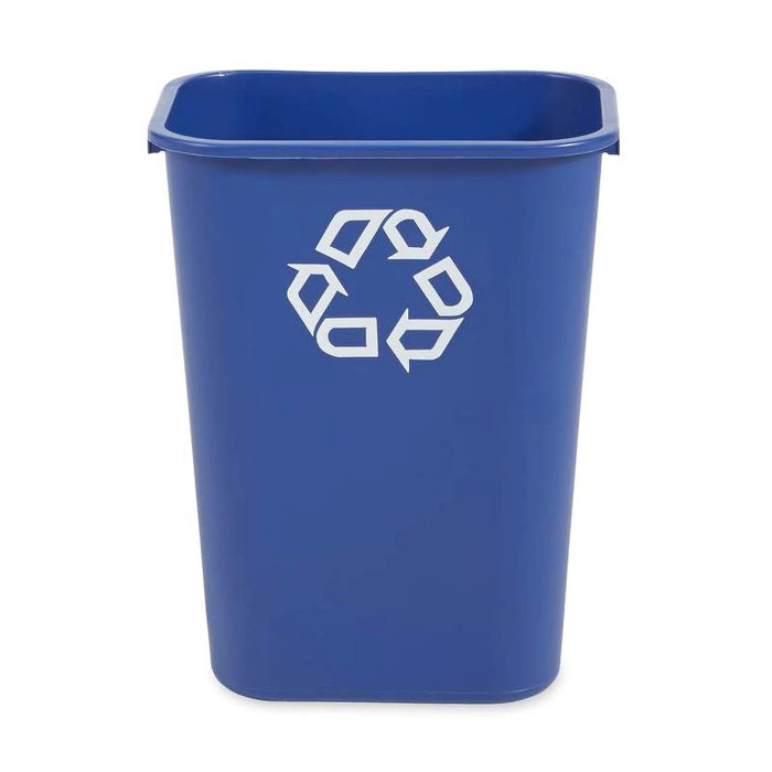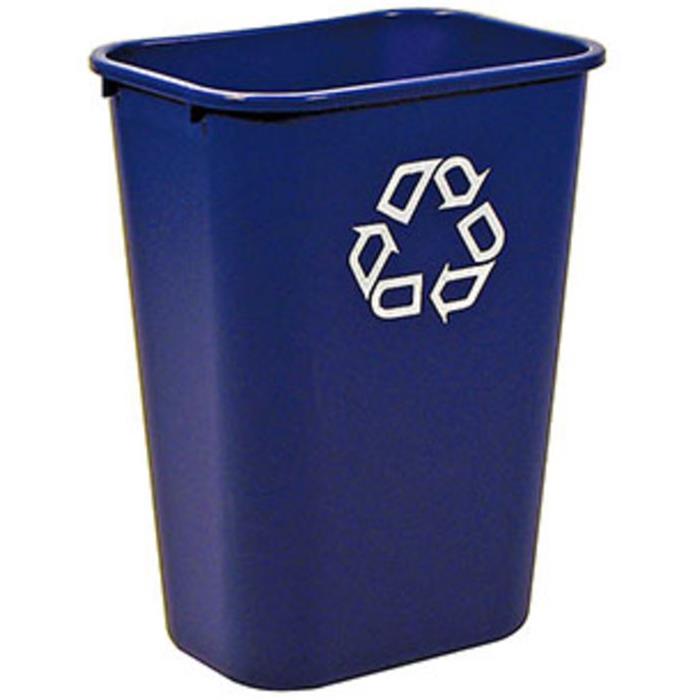 Papelera de reciclaje de escritorio, con símbolo universal de reciclaje. Bordes redondeados que lo hacen más fácil de limpiar y resistente.