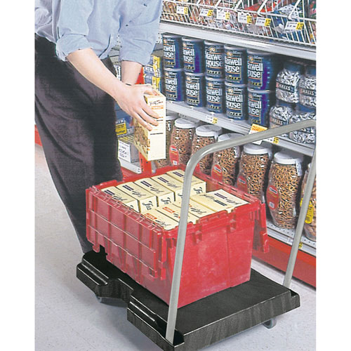 Carro plataforma estándar con mango ergonómico. Ruedas antihuella de 12,7 cm Ø, 2 fijas y 2 giratorias. Capacidad carga 181,4 Kg.