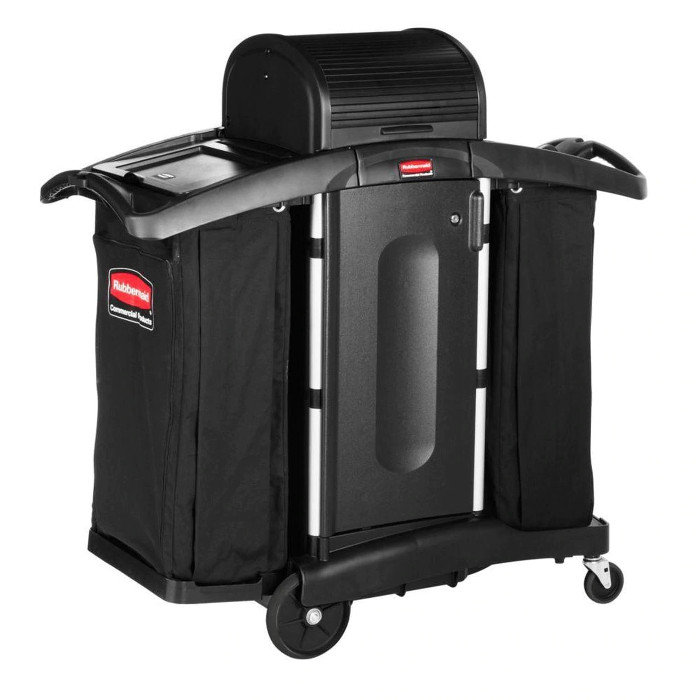 Carro de camarera de máx. seguridad. Incluye cubierta de seguridad y puertas con cierre, con acceso desde ambos lados del carro y 2 bolsas.
