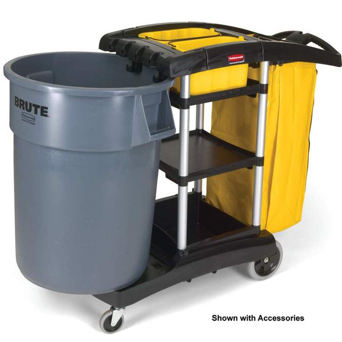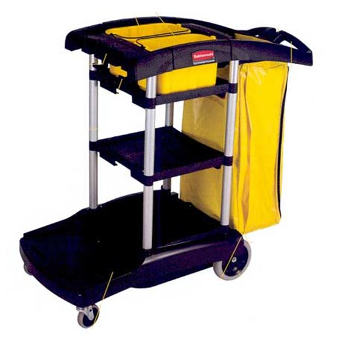 Carro con bolsa de vinilo de 128 L. Incluye 2 contenedores con asa de 9 L. 2 ruedas giratorias de 10 cm Ø y 2 fijas antimarcas de 20 cm Ø.