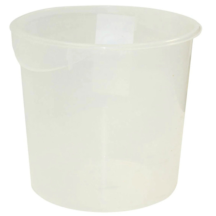Recipiente redondo de polipropileno blanco translúcido. SIN ASA. SIN TAPA. Capacidad 17 L. Sin BPA.