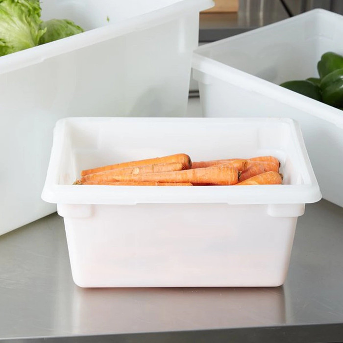 Aptas para lavavajillas y refrijerador. Polietileno blanco para guardar y transportar los alimentos de forma más económica. Ventanas en las cajas y tapas para escribir la fecha de almacenamiento de los productos asegurando así un control de inventario más sencillo.
