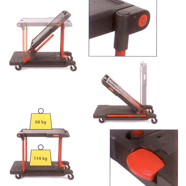 Dimensiones y carga útil adaptadas a las necesidades del usuario. Peso total 22,6 Kg. Satisface diversas necesidades a través de un solo carro. Los elementos clave diseño del carro nos permitirán su utilización como un carro funcional de carga media, una carretilla o una plataforma rodante, pudiéndose además plegar para su almacenamiento. Bandeja inferior ampliada, para una carga más fácil. Asa ergonómica para un fácil manejo. Espacio superior integrado y con rebordes. Carga estante superior: 68 kg. Carga estante inferior: 114 kg.
