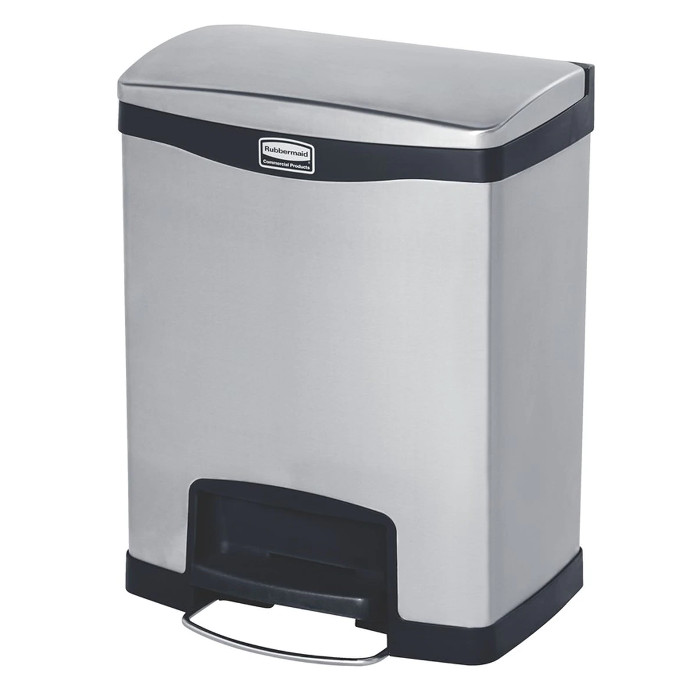 Papelera de acero Inox de 30 L con pedal frotal que se adapta a los espacios más pequeños. Dos compartimentos interiores. Tapa silenciosa.
