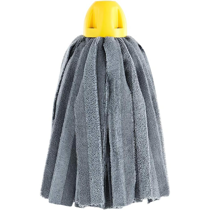 Fregona de tiras de microfibra con casquillo de polipropileno amarillo. Para todo tipo de suelos. Fregona extra absorbente.