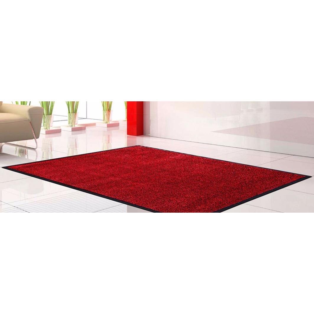 Alfombra de interior roja compuesta con base de nitrilo 100% y fibras torsionadas de nylon 6.6. Ideal para tráfico muy intenso.