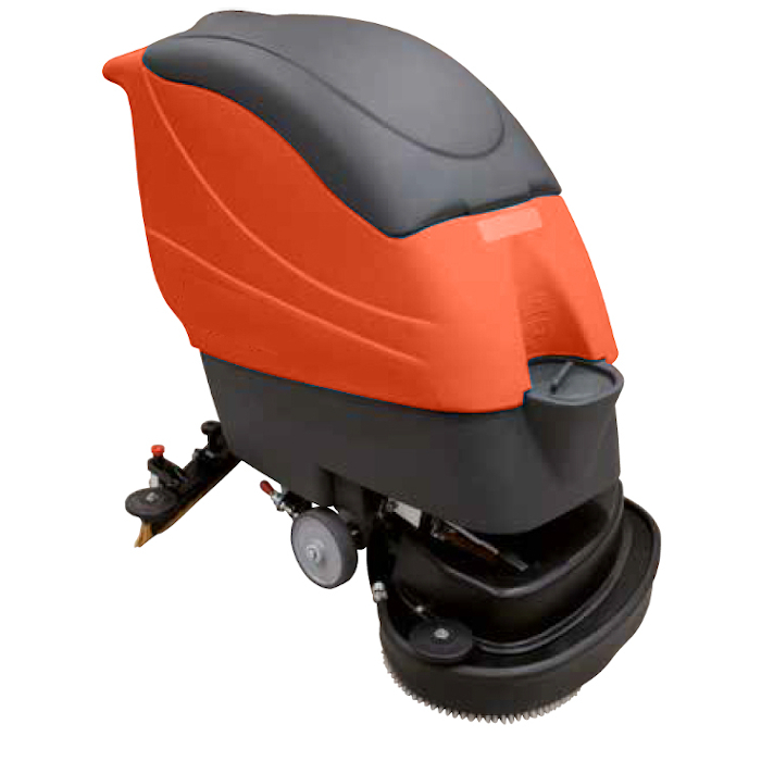 Peso: 93 kg. Tracción: mecánica. Panel de mandos de uso simple e intuitivo: programación velocidad de avance, selectores lavado y aspiración, indicador de nivel baterías, indicador sentido de marcha, interruptor de encendido. Amplia empuñadura con palanca de mando tracción en los dos sentidos de marcha. Plato cepillos autonivelante. Tapa extraíble sin herramientas y provista de sistema de cierre. Motor aspiración y filtro de inspección fácil y sin el uso de herramientas. Depósito solución detergente con amplia apertura protegida por un tapón de enroscado rápido. Freno de estacionamiento ubicado directamente en la rueda. Ruedas antimarca.