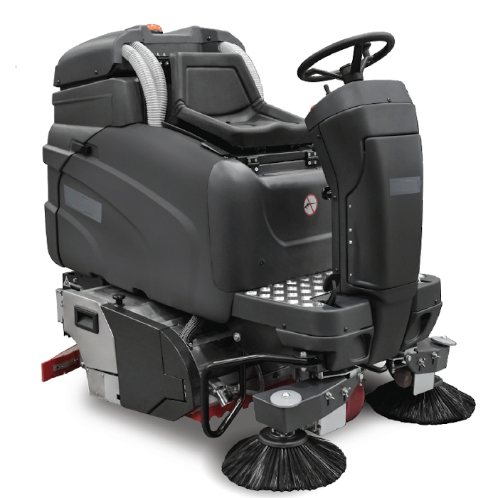 Peso: 374 kg. Cepillo lateral derecho/izquierdo completo (ancho de trabajo 1060 mm). Gran autonomía de la batería (hasta 4h) gracias a un consumo muy bajo de la solución de lavado y al depósito de gran capacidad. Sistema de dosificación de detergente muy preciso, proporcional al suministro de agua, que determina un número reducido de paradas y un uso máximo de la carga de la batería para el funcionamiento eficaz de la máquina. Volante ergonómico de nueva concepción con radio de giro muy reducido (860mm) que le permite girar prácticamente sobre sí misma tanto a derecha como a izquierda. Cepillo central autonivelante que permite un trabajo perfecto incluso en superficies irregulares. Los flujos de aire forzados mantienen la solución siempre dentro de la zona de lavado patentado. Barrido, hasta 1060mm, gracias a los cepillos laterales inteligentes de gran diámetro (Activos) que se retraen automáticamente tanto en caso de impacto como en las curvas para permitir la recogida perfecta de todo el material. Tanque para desechos sólidos hasta 30 l. Proceso de secado de doble suelo que permite que las ruedas traseras se deslicen sin resbalar sobre superficies mojadas. Característica verde: muy bajo consumo de agua. Kit de altura de asiento disponible.