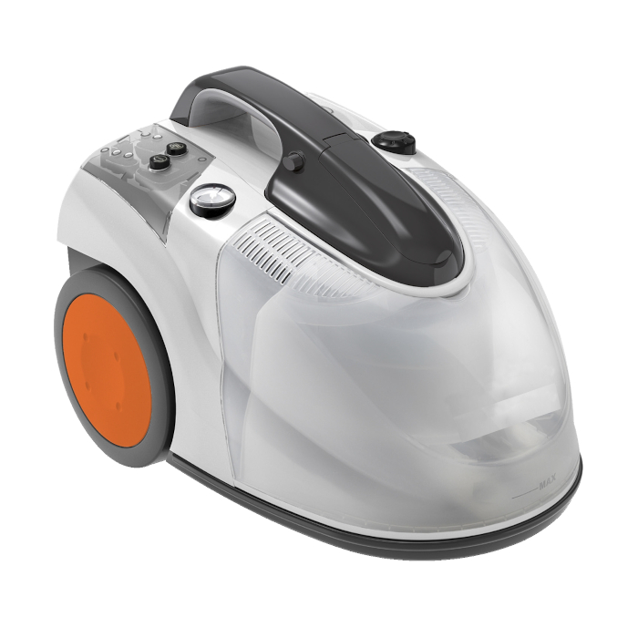 Peso: 14 kg. Cuerpo de ABS. Indicador luminoso de vapor listo. Caldera 1,9kW de acero inoxidable AISI 304. Indicador de bajo nivel de agua. Alimentación continua de la caldera desde el depósito previsto al efecto. Tubo flexible 2 m. Ruedas adecuadas para su uso en ambientes alimentarios. Interruptor principal ON/OFF con indicador luminoso de encendido. Interruptor de la caldera ON/OFF con indicador luminoso de encendido. Regulación del flujo de vapor. Capacidad depósito de recuperación 8 l. Filtro lavable. Sistema de filtración HEPA H14. Manómetro.