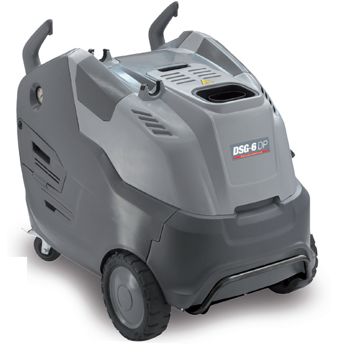 Generador de vapor gasoil. Presión: 10 bar. Caudal: 50 / 90 kg/h. Depósito: 20 l. Depósito det.: 3,5 L. Consumo: 0,35 kw. Temperatura: 180 ºC.